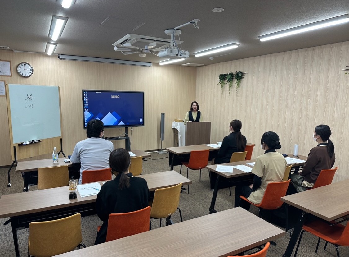 入社後研修の一環として、毎月2時間の接遇マナー研修を実施しています。